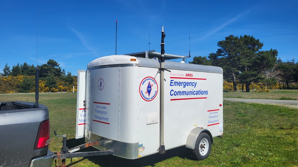 The Coos County ARES/RACES team has a capable mobile communications trailer that can be deployed for long periods of time or in remote area as required by Emergency Management. The units size and weight allow it to be pulled by most vehicles easily and makes for quick maneuvering in tight places or on narrow roads.